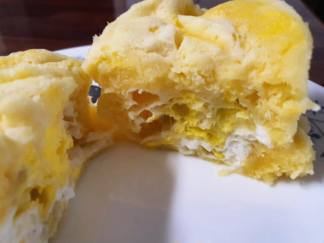 먹어보았습니다. 고소한 향과 달달하면서 담백한 계란 맛이 너무나 맛있었습니다. 추억의 계란빵 맛에 견주어도 꿀리지 않는 맛이었습니다. 아내 분께서는 조금 더 촉촉했으면 좋겠다고 했는데 전자렌지 돌릴 때 시간을 조금 줄여주면 될 것 같습니다.