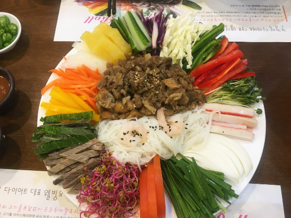 토마토, 양파, 맛살, 무순, 피망, 양배추, 오이, 파인애플, 당근, 단무지, 깻잎 등 종류도 괜찮고 신선합니다. 고기도 많고 여러 종류의 채소를 먹을 수 있는 게 월남쌈의 장점인 것 같습니다. 간혹 고기의 양은 그때그때 차이가 있을 수 있습니다. 예전에 고기가 조금 줄었다는 생각이 들었었는데 요즘은 다시 괜찮아진 것 같습니다.