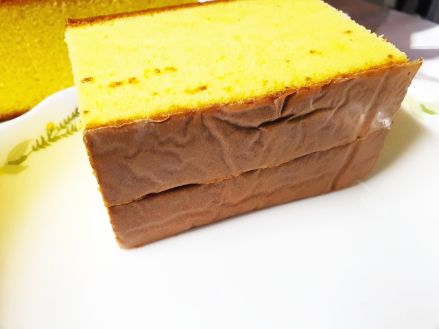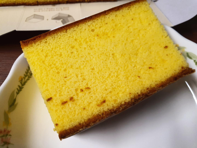 비닐을 벗기니 노오란 유자색의 카스테라가 먹음직스러워 보입니다. 유자향도 조금 나는 것 같은데요. 유자는 들어있는지 찾아보기 힘듭니다.