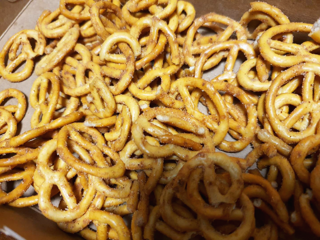 미니프레첼에 양념이 듬뿍 묻어있었습니다. 제가 먹어봤던 프레첼보다 크기가 작고 얇았습니다.