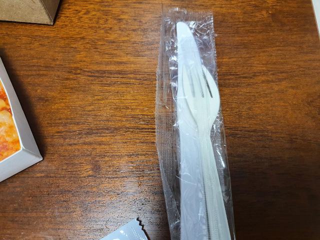 잘라먹기 좋게 나이프와 포크가 같이 들어있습니다.