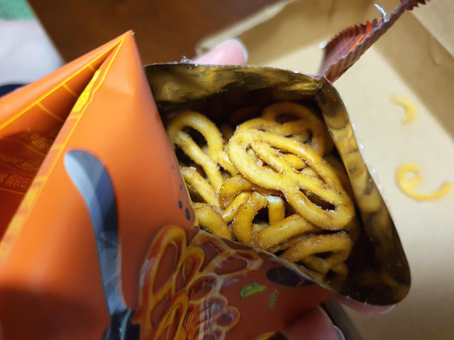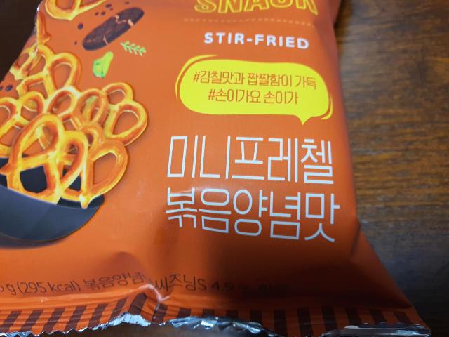 미니프레첼 볶음양념맛을 먹어보았습니다. 프레첼이 미니라서 작고 얇아 먹으면 입에서 바로 사라졌습니다. 볶음양념씨즈닝은 어디서 많이 먹어본듯한 맛으로 계속 먹다보니 고래밥 먹을 때 먹어본 맛과 비슷하였습니다. 미니프레첼은 작아서 여러개를 한번에 먹어야 맛있었습니다. 서비스로 주셔서 그런지 더 맛있게 먹었던 것 같습니다.
