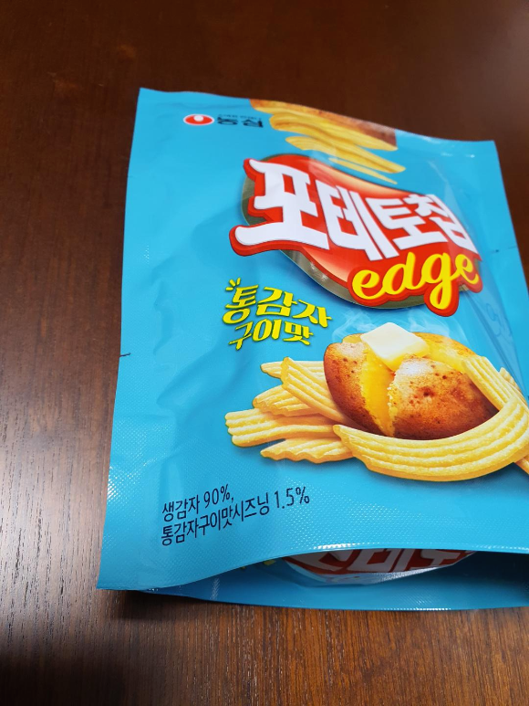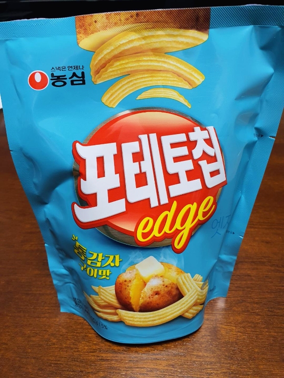농심 포테토칩 엣지 통감자구이맛입니다. 엣지라는 이름을 붙여서 막대 형태의 감자칩을 새롭게 선보이는 것 같습니다. 감자 맛 과자의 변신은 끝이 없나 봅니다.