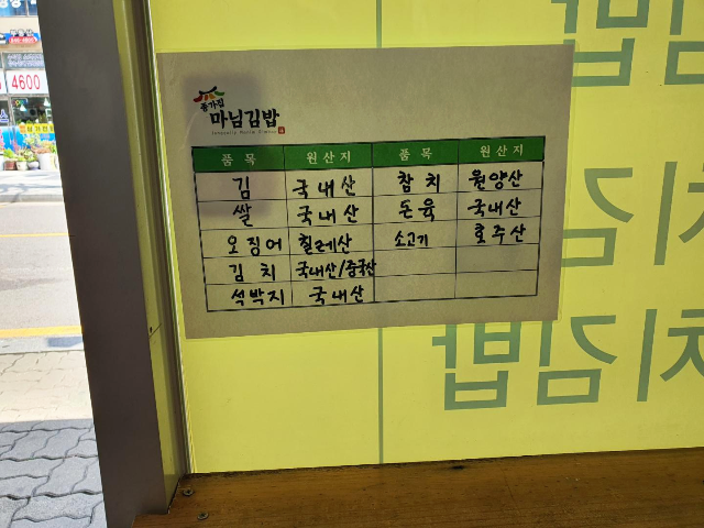 김밥을 준비해주시는동안 원산지도 확인하였습니다.