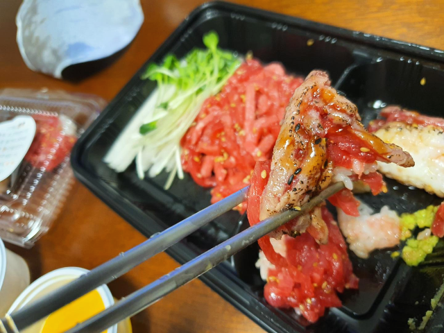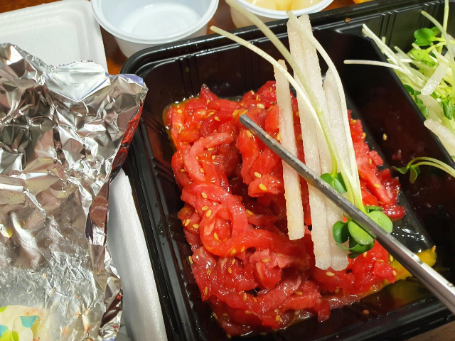 지난번 먹었던 육회와 육회초밥은 상상 이상의 맛으로 놀랐다면 새로 주문한 스테이크육회초밥과 육회덮밥이 생각보다 별로여서 놀랐습니다. 이 날 음식 컨디션이 안 좋았던 건지 다음에 한번 더 먹어보고 계속 먹을지 생각해봐야 할 것 같습니다.