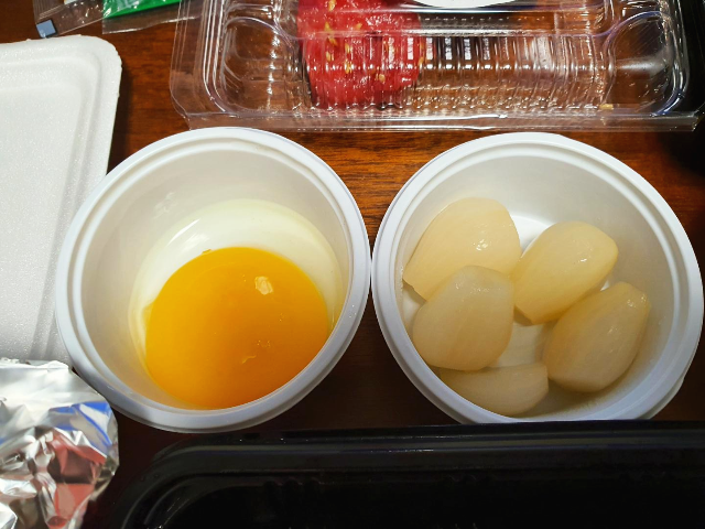 육회에 섞어먹는 달걀노른자입니다. 매번 노른자만 오는데 흰자는 어디 가는지 궁금해집니다. 그냥 버리면 아까운데...