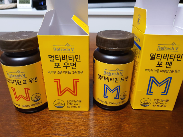 건강기능식품으로 각 60정이 들어있습니다. 하루에 하나씩 먹으면 두 달 정도 먹을 수 있는 양입니다.
