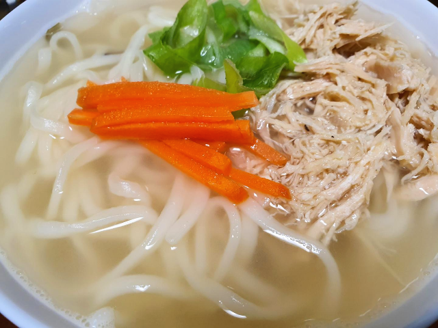 고명은 파와 당근만 올려주었고 닭가슴살은 닭곰탕에 가득 들어있었습니다. 닭곰탕에 면이 들어가서 싱거울 수 있어서 소금으로 간을 살짝 해주었고 후추도 조금 뿌려주었습니다.