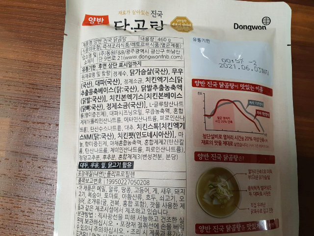재료는 대부분 국내산을 사용했습니다. 치킨스톡에 치킨팻만 인도네시아산입니다.
