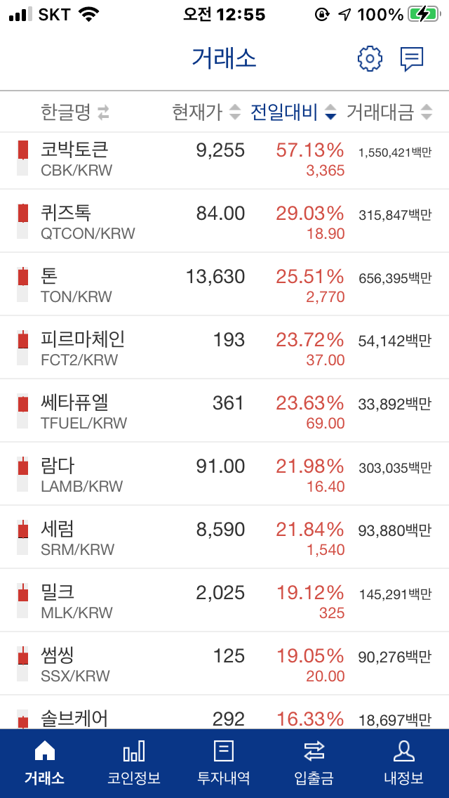 다른 코인들 상황들도 좋다. 코박토큰은 57% 상승 중이다. 생소한 알파코인들이 상승 중이지만 긍정적인 영향이 있을거란 생각이다.