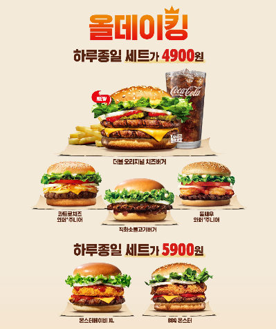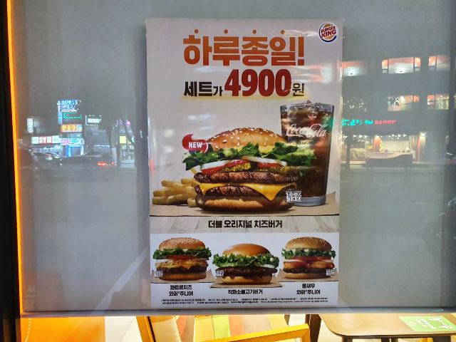 TV광고에서 본 하루종일 세트가 4900원입니다. 아내 분께서는 이 광고를 보고 버거킹 햄버거가 먹고 싶다고 하여 방문하게 되었습니다.