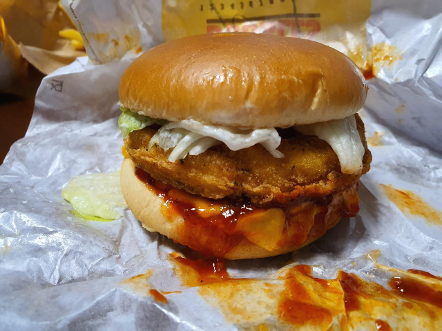BBQ몬스터버거를 먹어보았습니다. 두툼한 치킨패티와 달달하고 짭짤한 맛에 매콤소스가 몬스터베이비XL버거와 비슷했습니다. 매콤한 맛이 들어간 버거가 맛있었습니다. 이제는 매콤소스는 필수가 되버릴 수도 있을 것 같습니다.