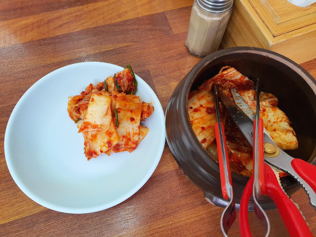 요 달달하면서도 날 겉절이와 같은 새콤한 김치와 같이 먹으니 바지락칼국수의 맛은 금상첨화였습니다. 아내 분과 둘이서 주문한 바지락칼국수 2인분이 딱 적당한 양으로 배 두둑히 잘 먹었습니다.