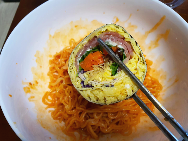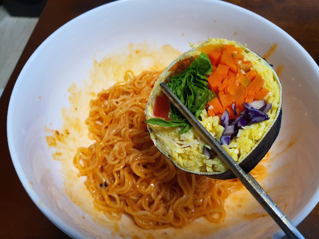 김밥 한줄씩으로는 배가 고플 것 같아서 배홍동 비빔면을 준비하였습니다. 키토식단에 비빔면... 뭔가 싶지만 아내 분께서 괜찮다고 하였습니다.
