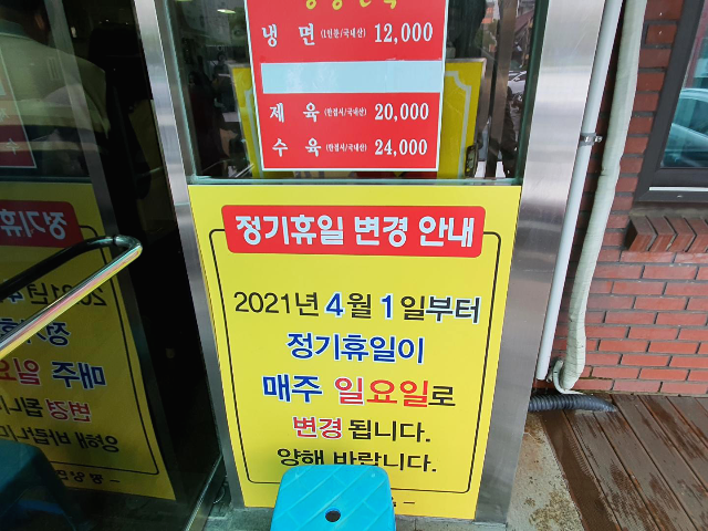 크게 다른 것 없었는데 2021년 4월 1일부터 정기휴일이 매주 일요일로 변경되었다는 문구가 있었습니다. 그전에는 화요일인가 평일에 휴일이었던 같은데 일요일에 휴일이 되니 뭔가 아쉬운 마음이 들었습니다. 하지만 일하시는 분들을 생각하면 일요일 휴무가 편하고 좋겠다는 생각도 하게 되었습니다. 저와 같은 사람은 이제 토요일에만 먹을 수 있게 되어 사람이 더 많은 것 같았습니다.