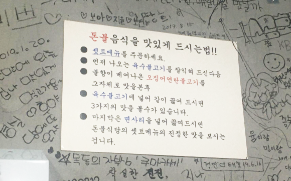 식당 벽면에 친절히 맛있게 먹는 법이 적혀있었습니다. 이제 본격적으로 먹기 위해 맛있게 먹는 법을 참고하였습니다.