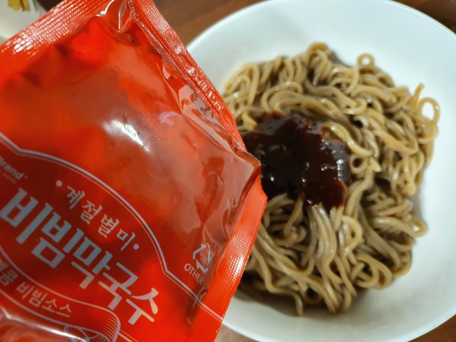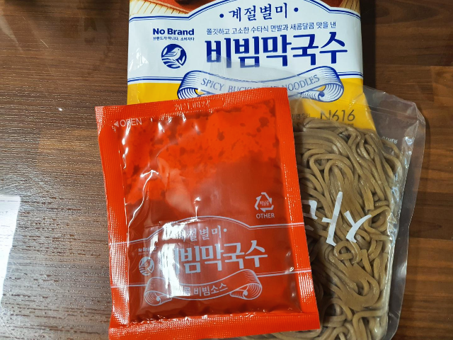 노브랜드 비빔막국수입니다. 비슷한 제품으로 노브랜드 메밀소바를 맛있게 먹었던 기억이 있어서 비빔막국수도 사봤습니다.