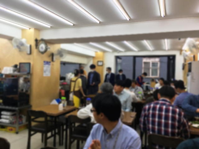 입구 오른쪽으로 주방 내부가 보이고 안쪽 공간은 ㄱ자 구조로 넓은 것 같으면서도 테이블이 너무 다닥다닥 붙어있어서 좁은 느낌이 들었습니다. 점심시간이라서 자리는 거의 만석이었습니다.