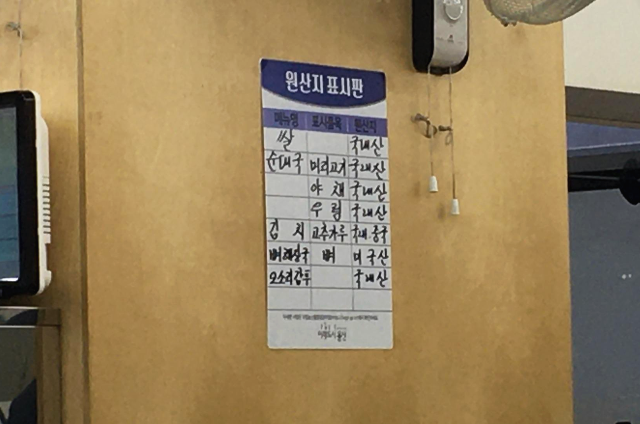 원산지 표시도 꼼꼼히 확인합니다. 순대와 순댓국에 들어가는 고기는 모두 국내산입니다. 뼈해장국의 뼈만 미국산을 사용하고 있습니다.