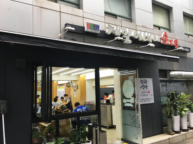 제일어버이순대입니다. 문 앞에 착한식당으로 예전에 먹거리X파일에서 착한식당으로 선정되었다고 합니다.
