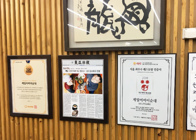 맛집을 인증하듯이 자랑스럽게 벽면에 붙여놓았습니다.
