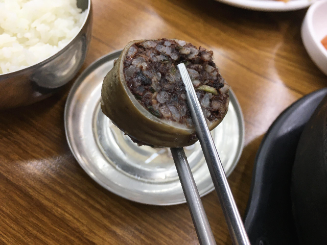 막창순대입니다. 피순대라고도 하는 것 같은데 이유를 잘은 모르겠습니다. 일단 먹어보았습니다.