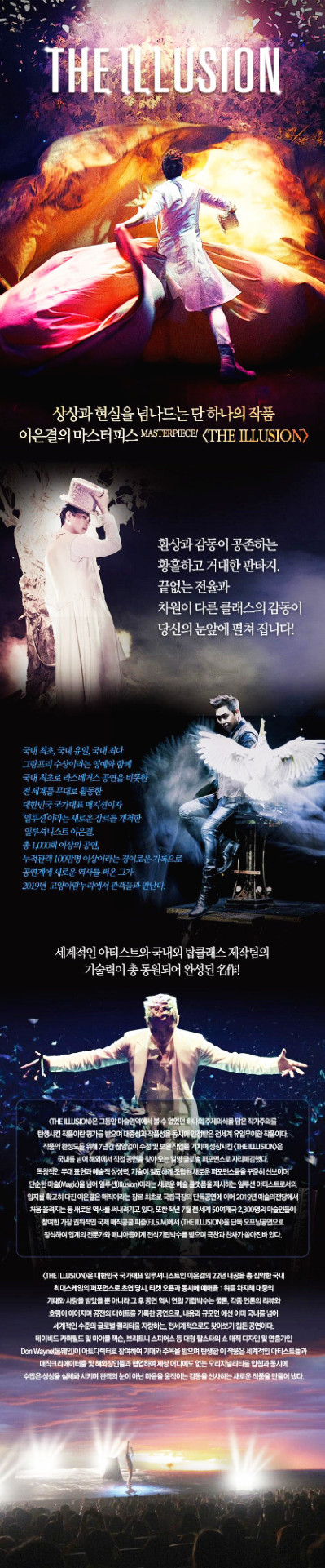 이은결 하면 모르시는 분이 없으실 겁니다. 뾰족뾰족한 머리 스타일에 재치 있는 입담으로 TV 방송뿐만 아니라 세계대회에서도 두각을 나타내며 대한민국 마술에 붐을 일으켰습니다. 강력한 카리스마와 깔끔한 무대 매너, 현란하고 빠른 손놀림으로 기존의 마술쇼에서 벗어나 매직 콘서트라는 브랜드와 장르를 탄생시키며 전국투어 콘서트를 10여 년 동안 해오고 있습니다.