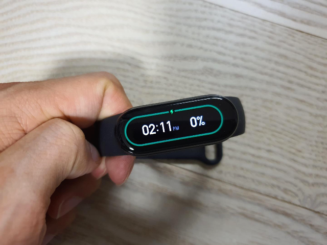 외관상으로 봤을 때는 사용하던 미밴드4와 별반 차이가 없어 보였습니다. 액정화면을 눌러봐도 켜지지 않는 것을 보니 충전을 해야 사용할 수 있는 것 같았습니다.