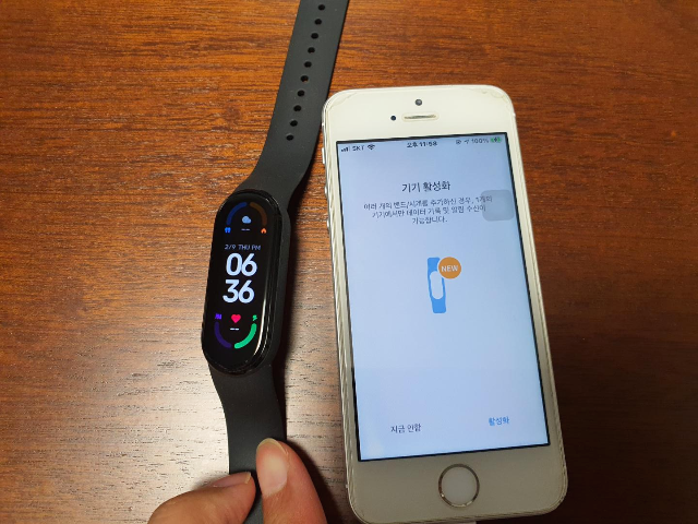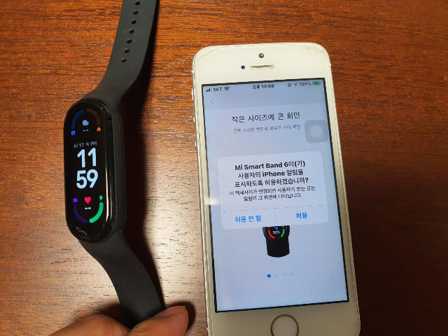 미밴드6와 아이폰 간의 동기화도 시작하였습니다.