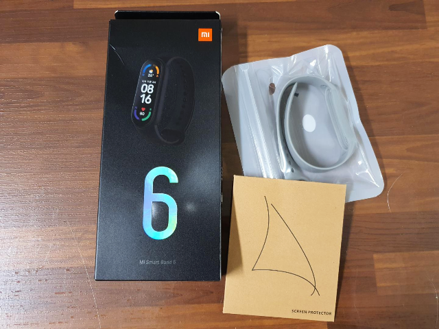 샤오미 미밴드6와 액정보호필름, 추가 스트랩입니다. 보호필름은 없어도 상관없지만 추가 스트랩이 너무 좋았습니다.