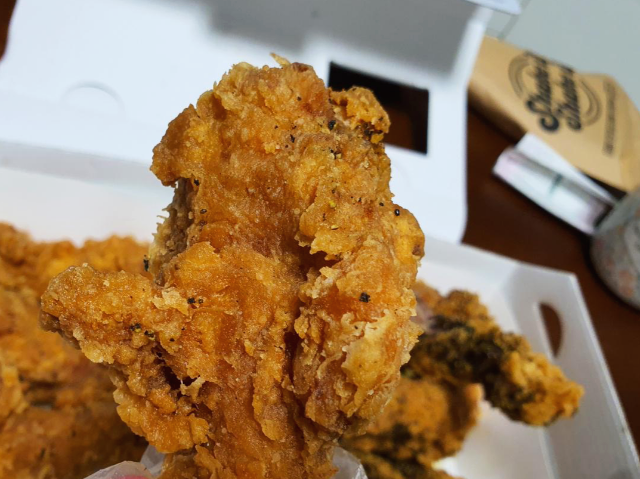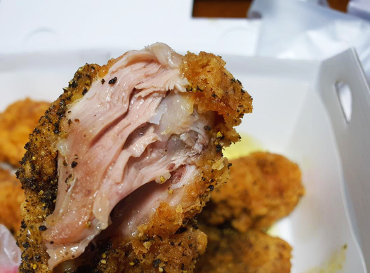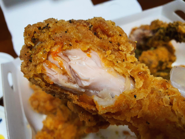 먹어보았습니다. 과자처럼 바삭한 튀김옷에 부드러운 닭다리살이 너무 맛있었습니다. 닭다리의 살은 정말 부드러워서 한입 크게 배어물고 먹어도 뻑뻑함 없이 맛있게 먹을 수 있는 것 같습니다. 블랙페퍼 때문에 더 맛있게 느껴진건지는 모르겠습니다.