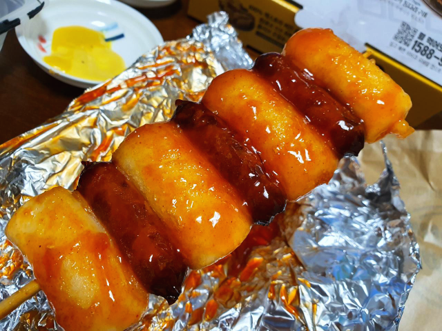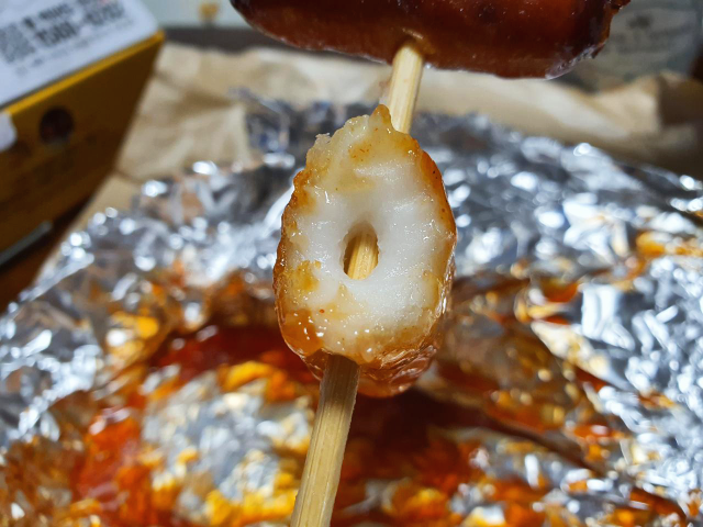 먹어보았습니다. 떡이 정말 맛있었습니다. 겉은 살짝 튀김으로 코팅되어 있고 속은 치즈처럼 부드러우면서 쫄깃한 게 너무 맛있었습니다. 소세지는 그냥 평범한 맛이고 떡이 맛있어서 떡꼬치만 먹고 싶을 정도였습니다.