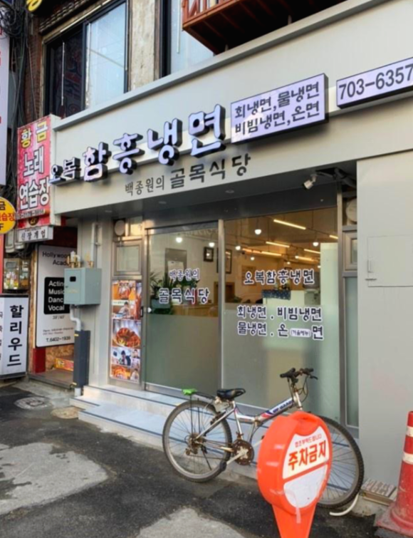 직장 동료들과 점심을 먹으러 오복 함흥냉면 식당에 다녀왔습니다. SBS 백종원의 골목식당에 나왔던 가게인데요. 청파동 골목에 있다가 4호선 숙대입구역 앞으로 이전했습니다. 평소에 대기줄이 꽤나 길었었는데 이번에는 운이 좋게 바로 입장할 수 있었습니다.