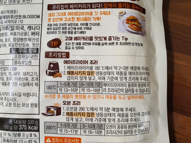 조리방법입니다. 에어프라이어 조리 방법으로