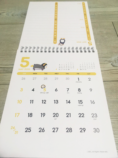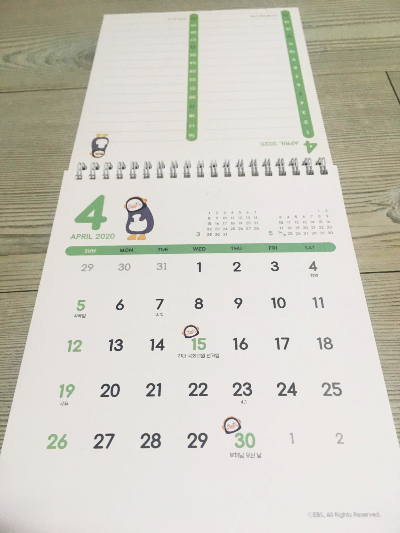 지난번 펭수 다이어리에 이어서 펭수 달력을 얻었습니다.