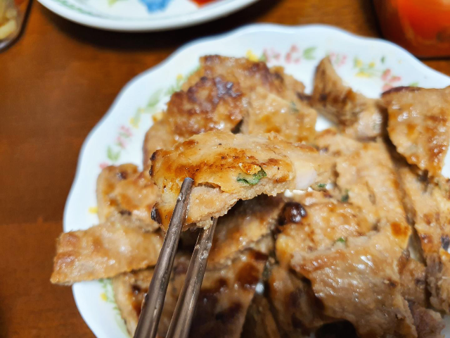 느끼한 걸 싫어하는 아내 분은 케첩에 찍어먹었습니다. 김치와도 잘 어울리고 떡갈비와 비슷하게 느껴져서 누구나 좋아할 맛으로 생각됩니다. 저는 돈가스소스에 먹었는데 그것도 괜찮았습니다. 뭐든 잘 어울리게 맛있는 것 같습니다. 단맛이 조금 강하게 느껴지지만 가끔 간편 반찬으로 먹기 좋은 것 같습니다. 맛있게 잘 먹었습니다.
