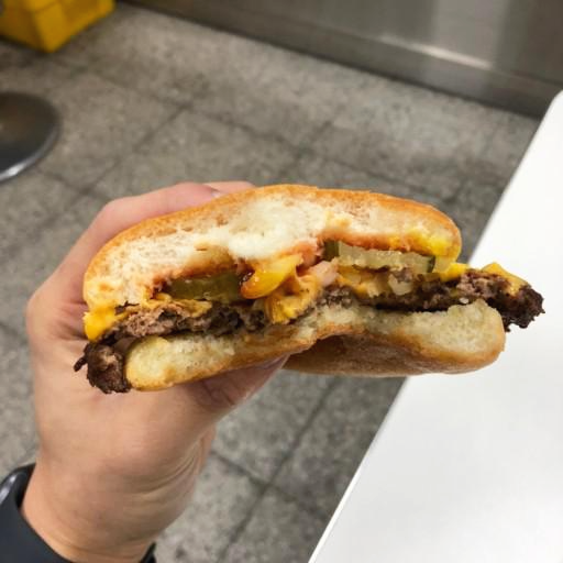 클래식 치즈버거입니다. 언양불고기 마냥 납작하게 깔린 패티가 특징입니다. 어떤 고기가 어떻게 들어갔는지 모르지만 한번 먹어보겠습니다.