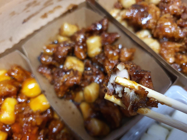 달달한 맛이 깊게 퍼지는 달콤강정입니다. 매콤강정에 비해서 자극적이지않아 질릴 수도 있을 것 같지만 깔끔하게 떨어지는 단맛으로 닭의 비린내만 나지 않으면 계속 먹게되는 맛인 것 같습니다.