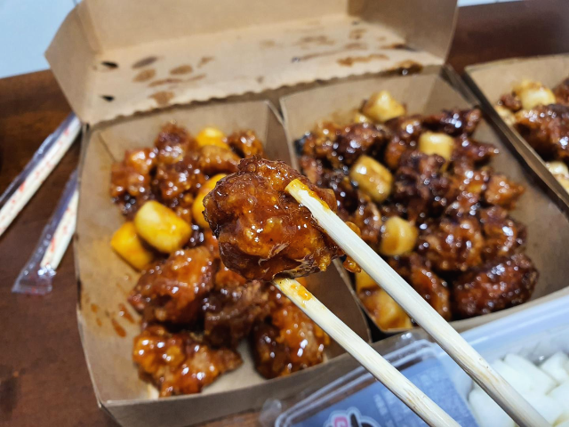 보기만해도 군침이 돌고 배가 고파서 맛있을 것 같지만 그래도 매콤한 맛으로 입맛을 돋우기위해 매콤강정을 먼저 먹어보았습니다.