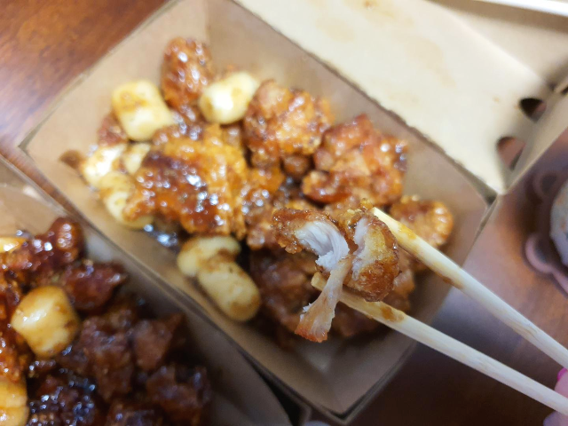 마지막 3번째로 마늘간장강정입니다. 보기에는 가장 연한색을 띠고 있어서 제일 손이 안가는 강정이었습니다.
