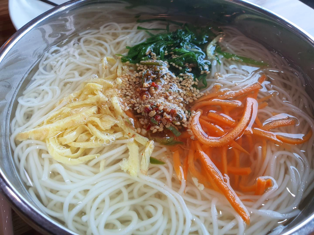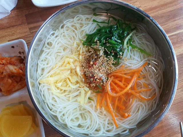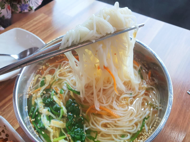 맑은 육수에 삼색의 고명으로 색감도 살리고 먹음직스럽게 생겼습니다. 비가 조금 오는 날이어서 국물이 굉장히 먹고 싶었습니다. 서울에서는 김밥과 우동을 같이 많이 먹었었는데 잔치국수도 김밥과 잘 어울릴 것 같았습니다.