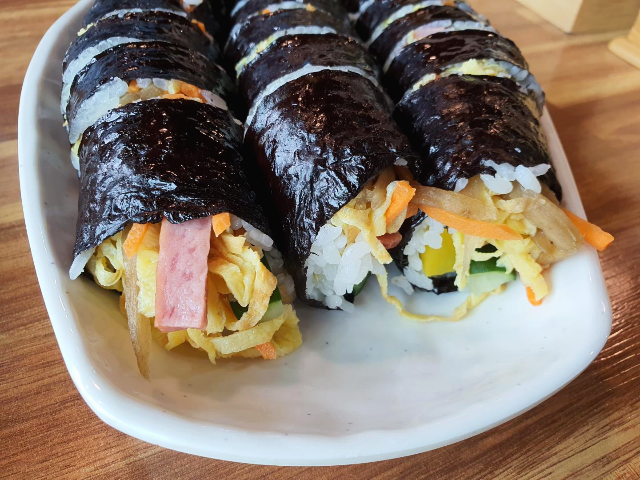 교리김밥입니다. 부슬부슬 계란 지단김밥입니다. 저희 동네에서 먹어보았던 마님김밥과 거의 비슷합니다. 요즘은 계란지단김밥이 어디에서나 볼 수 있는 것 같습니다. 처음 먹어보았던 마님김밥과 맛이 어떻게 다른지 비교해보면서 먹어보았습니다.