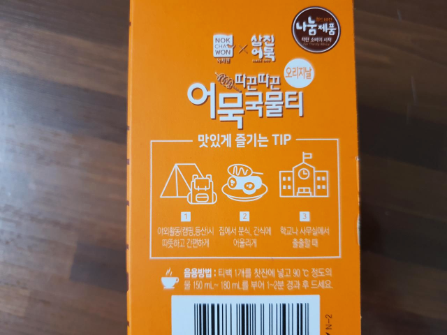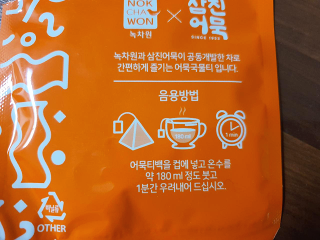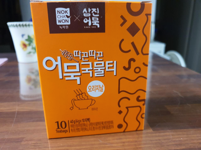 녹차원과 삼진어묵에서 콜라보하여 만든 따끈따끈 어묵국물티 오리지날입니다. 오리지날과 매운맛 2가지 타입이 있었는데요. 매운걸 잘 못 먹는 저는 오리지날로 구입해보았습니다.