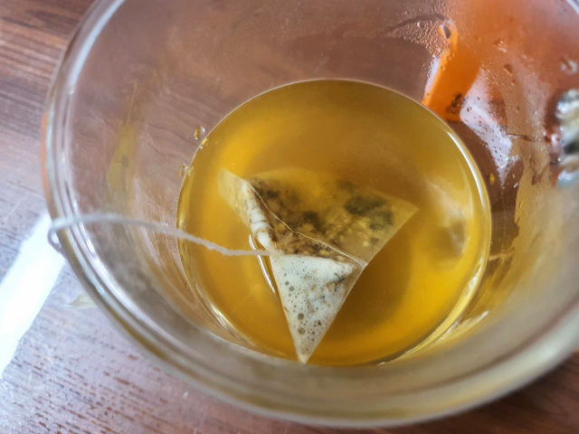 어묵국물티의 개별포장용지를 뜯으니 어묵국물의 향이 퍼지면서 티백에 가루가 조금 날리는 듯하였습니다. 모양은 일반 티백과 동일한 모습입니다.