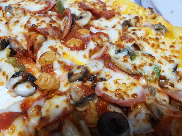 파파존스피자 수퍼파파스를 먹어보았습니다. 부드러운 도우에 여러가지 토핑이 기본적인 피자의 맛으로 잘 어우러졌습니다. 다른 피자와 비교하자면 토핑의 재료보다 치즈의 양과 질을 잘 살려서 피자치즈의 맛이 좋은 피자로 생각되었습니다. 토핑이 조금 부족하다고 느꼈지만 치즈의 풍미가 제대로 느껴져서 아쉽지 않았습니다.
