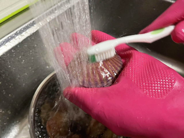 껍데기도 칫솔로 깨끗이 씻어주었습니다. 껍질을 먹는건 아니지만 껍질있는 해산물들 보면 칫솔질을 하길래 저도 한번 해보았습니다.