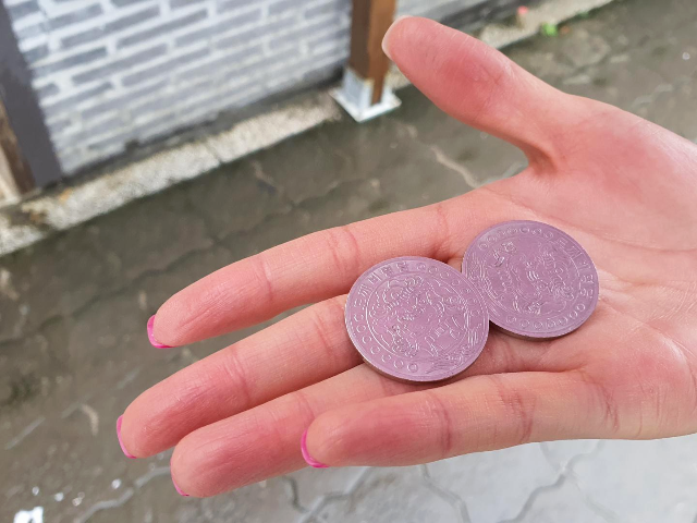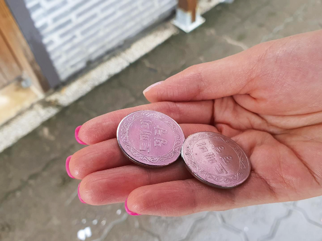 도깨비명당 전용 코인입니다. 아내 분과 저와 한 번씩 하려고 이천원으로 코인 두 개를 교환하였습니다.