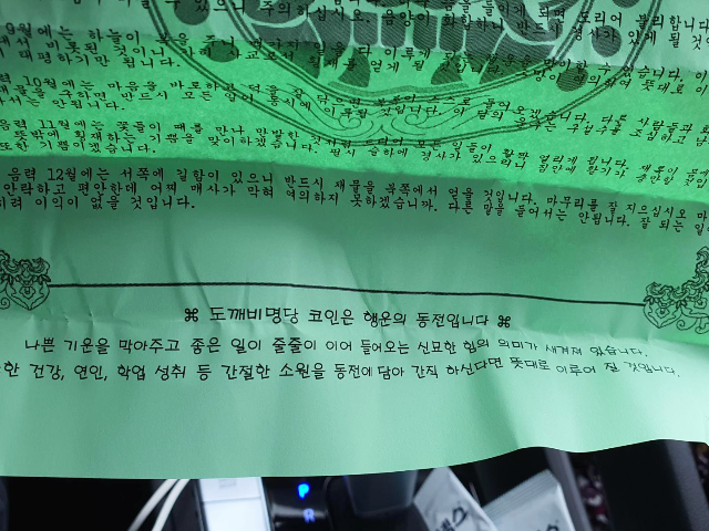 경주 황리단길 도깨비 명당 토정비결 운세입니다. 총운과 매월 운세가 나와있습니다. 전체적으로는 좋은 이야기들로만 있었던 것 같습니다. 좋은 이야기는 기분 좋게 안 좋은 이야기는 조심하도록 명심하면 되는 것 같습니다.