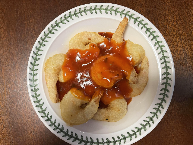 진진 칠리새우를 먹어보았습니다. 튀김옷이 새우에 잘 붙어있어서 바삭한 튀김 맛과 새우의 탱글한 맛을 잘 느낄 수 있었습니다. 소스는 중화풍 소스로 살짝 매콤하면서 달콤했습니다.