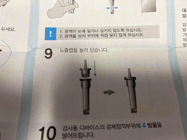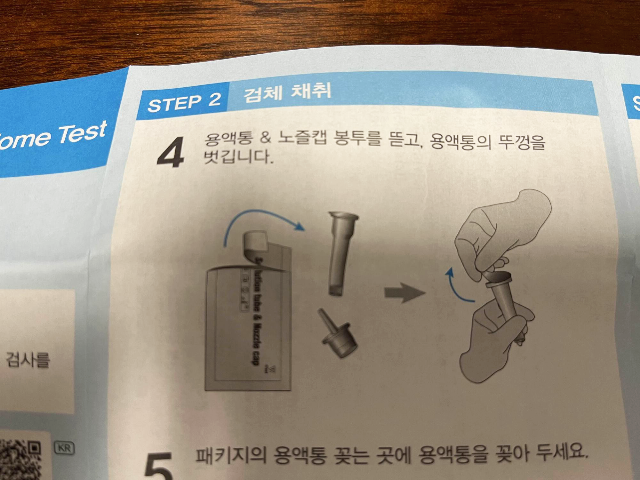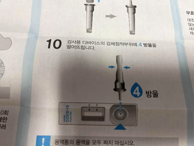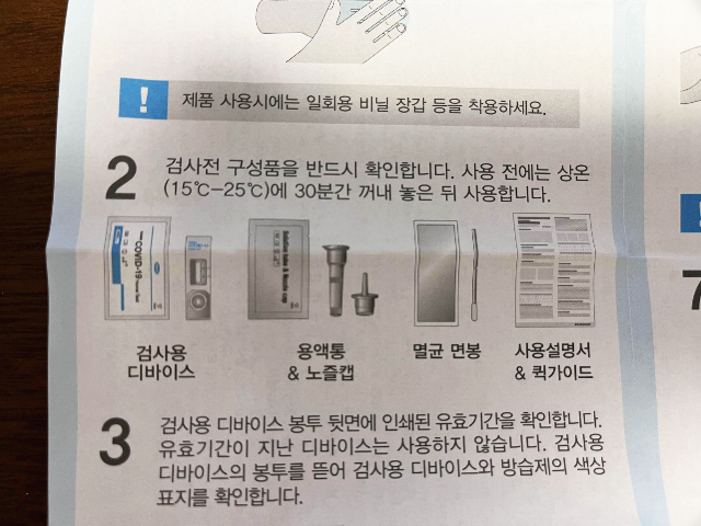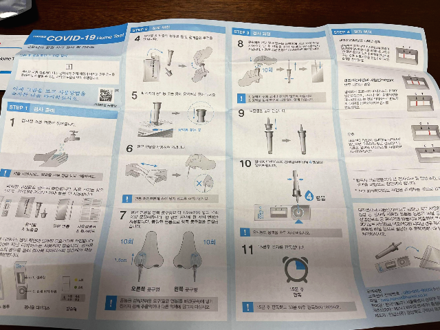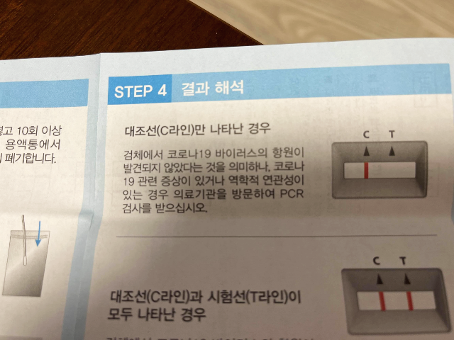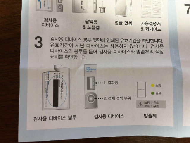떨리는 마음으로 코로나19 항원 자가 검사 퀵 가이드를 펼치고 하나하나씩 차례로 따라 해 보았습니다.